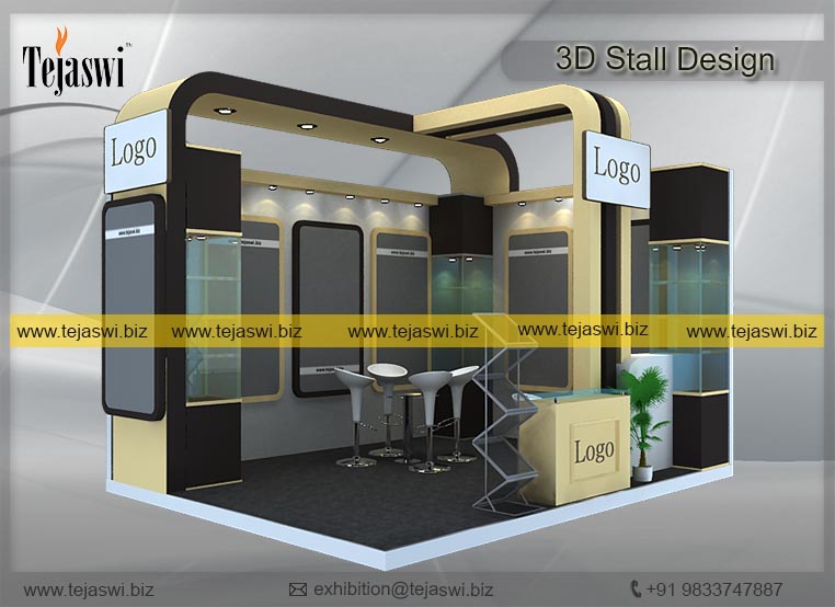 4 Meter x 3 Meter Exclusive Jewellery Exhibition Stall Design for creating Jewellery Display Optimization. The Exhibition Stall is an Simplistic Sophisticated Approach for display of Jewelleries in a defined manner.